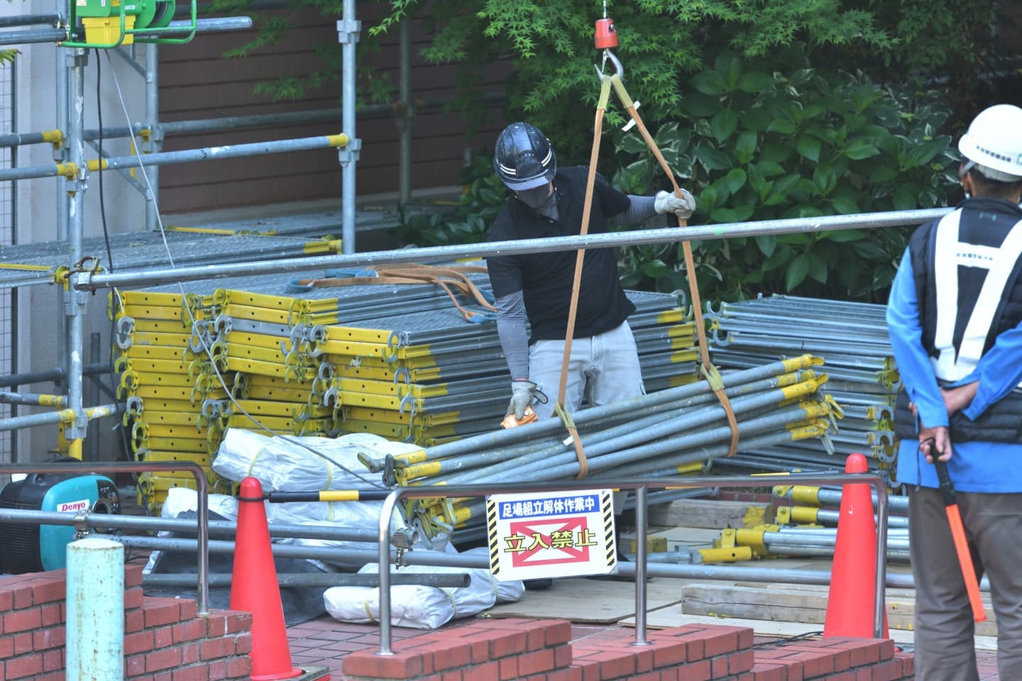 現場によっては、仮設足場の運搬や設置の補助業務などがあります。高所で着用が義務づけられているフルハーネス型墜落制止器具の貸与や特別教育の受講など、しっかりとサポートします。